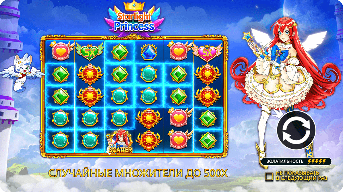 Множители в Starlight Princess бывают двух типов: случайные в базовой игре и накапливаемые во фриспинах. В бонусном раунде все выпавшие множители (от x2 до x500) сохраняются до конца, и в финале их сумма применяется к общему выигрышу за раунд. Чтобы лучше понять динамику, советуем играть в Starlight Princess сначала в демо-режиме, а затем уже переходить на реальные деньги.